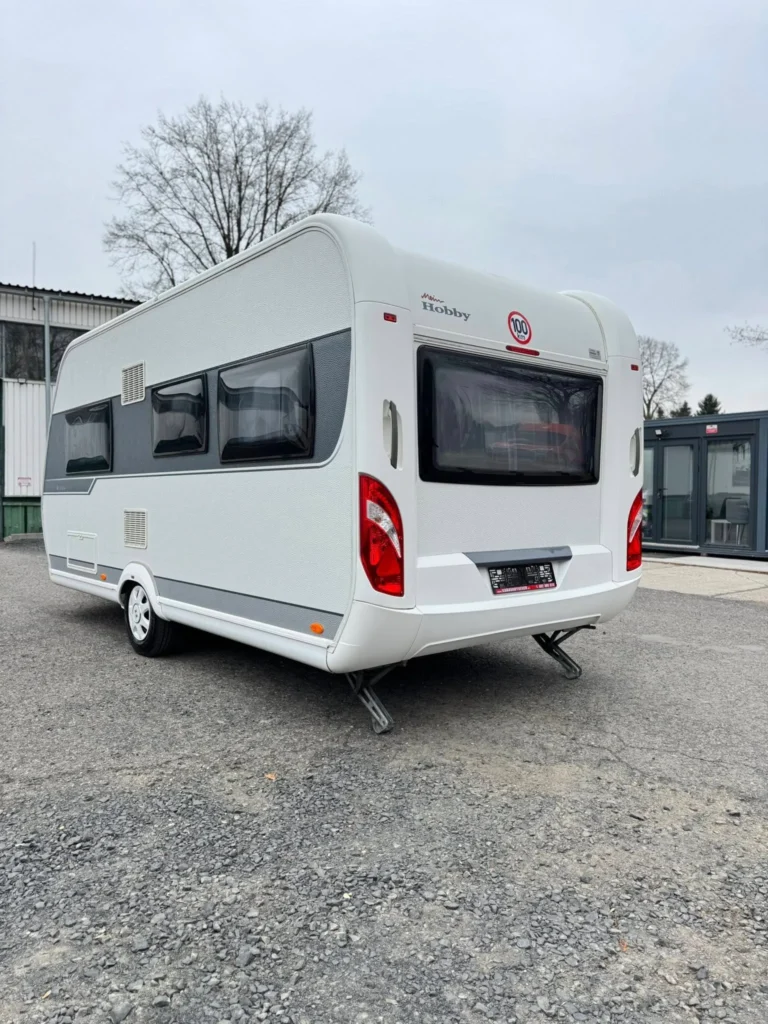 Dobrý den, rádi bychom vám nabídli oblíbený karavan známé značky Hobby De Luxe 460 s francouzskou postelí pro 4 osoby.