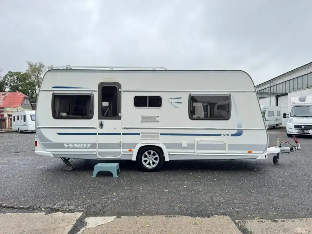 Představujeme FENDT Saphir 510 z roku 2009 – prostorný karavan pro 4–5 osob, který nabízí pohodlí, praktičnost a kvalitu značky FENDT.